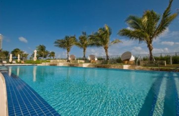• An ocean view pool deck with a bridge over a lagoon leading to your private cabana a few steps away